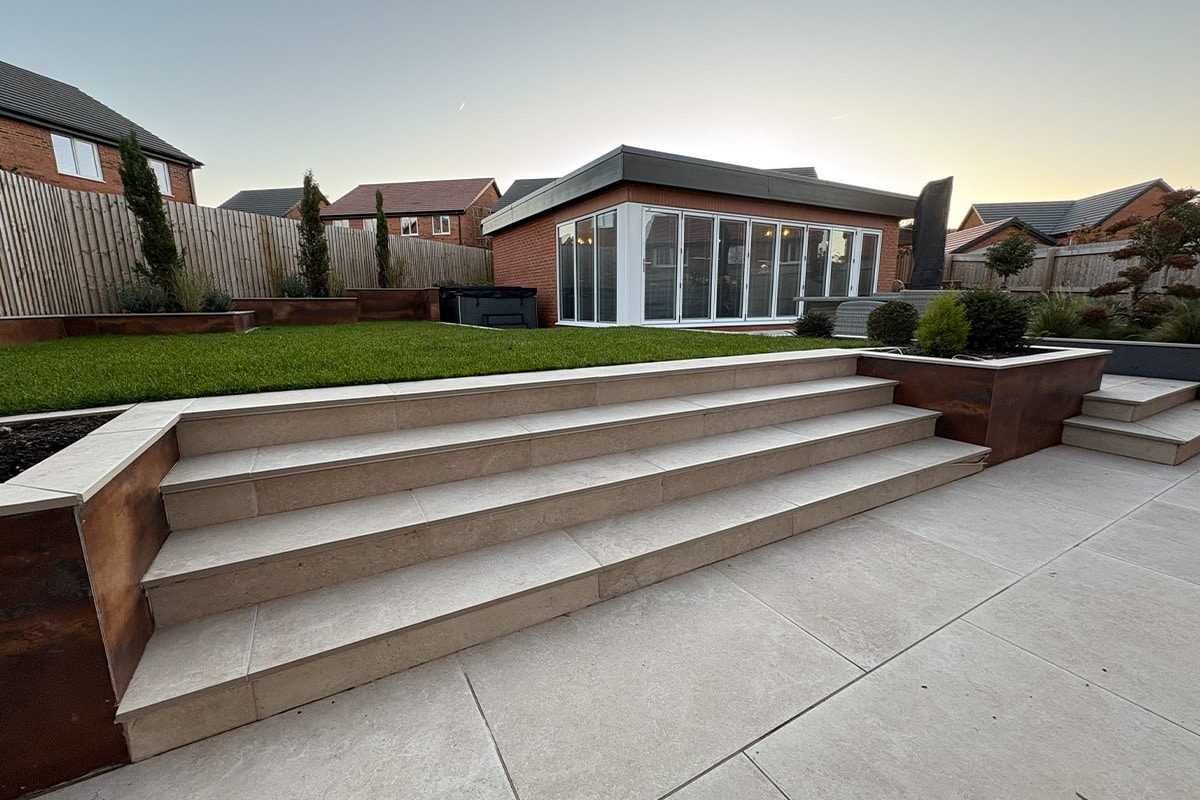 As this garden was sloped, we needed to incorporate different levels into the garden design to accommodate this and make use of the available space. This was a challenge in this garden transformation, due to the specifications our clients had for a garden room and hot tub space.