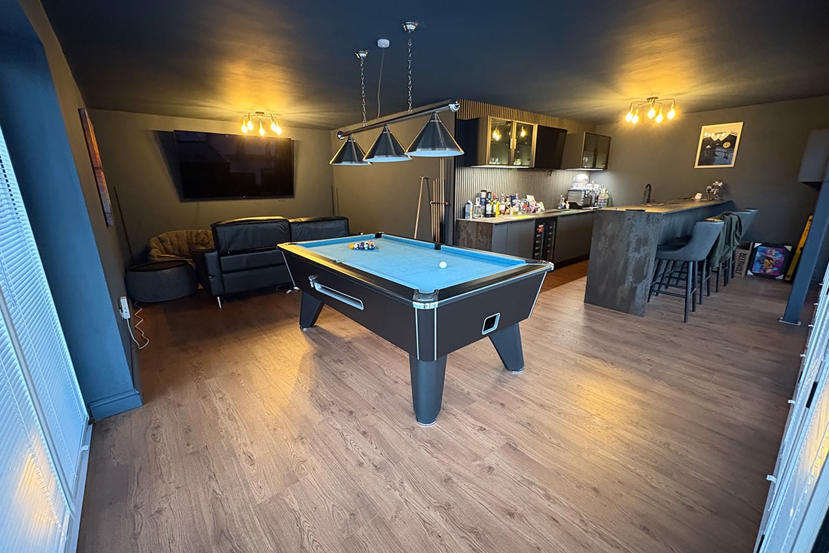 Our clients wanted a bespoke garden room that could be used as an outdoor bar, with a pool table and cinema screen. Given the size of this room, we needed to come up with a plan to tackle the sloped garden and maximise the space. This resulted in us digging into the slope of the garden, so we could build the garden room in a large enough space with a stable foundation underneath.